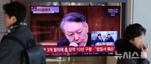 [서울=뉴시스] 김선웅 기자 = 26일 서울역 대합실에 설치된 TV에서 윤석열 전 대통령에 대한 체포 방해 및 국무위원 계엄 심의·의결권 침해 등 혐의 사건 결심공판 뉴스 영상이 송출되고 있다. 조은석 내란 특별검사팀이 윤 전 대통령을 기소한 4개의 내란 재판 중 처음으로 변론이 종결된 이날 결심공판에서 특검은 징역 10년을 구형했다. 2025.12.26. mangusta@newsis.com |