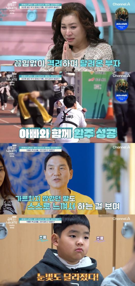 특히 첫째 아들은 지친 나머지 주저 앉아 눈물을 흘렸지만 “이대로 포기할 거야?”라는 아빠의 물음에 “아니지”라며 이 악물고 달리는 모습을 그려내 스튜디오를 눈물바다로 만들었다.