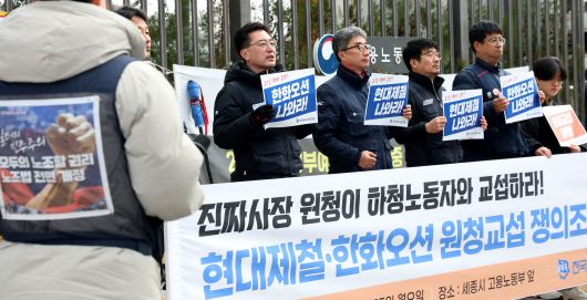 27일 노동계에 따르면 중앙노동위원회는 한화오션 조선하청노조와 현대제철 비정규직지회가 각각 한화오션, 현대제철 등 원청 기업을 상대로 제기한 쟁의조정 신청에 대해 ‘조정 중지’ 결정을 내렸다.
