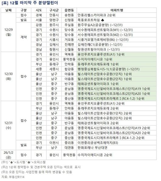 이번주 청약일정, 분양일정 /부동산R114 제공 |