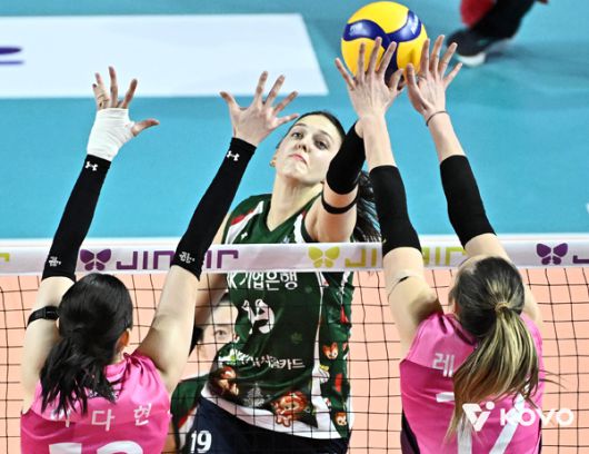 흥국생명은 지난 경기 변칙 블로킹으로 상대 IBK의 공격을 완벽하게 차단했다. 사진 제공= KOVO |