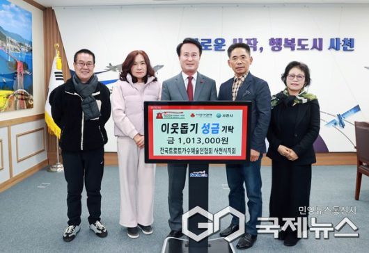 (사천=국제뉴스) 구정욱 기자 = 전국트로트가수예술인협회 사천시지회는 12월 26일 사천시청을 방문해 관내 어려운 이웃을 위한 성금 101만 3000원을 기탁하며 희망 2026 나눔 캠페인에 동참했다.