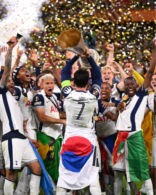 2010-11시즌 독일 분데스리가 함부르크에서 프로에 데뷔한 손흥민은 국가대표팀과 소속팀에서 우승과는 연을 맺지 못하다가 지난 5월 2024-25시즌 UEL 결승에서 맨체스터 유나이티드를 1-0으로 물리치며 무관에서 탈출했다.