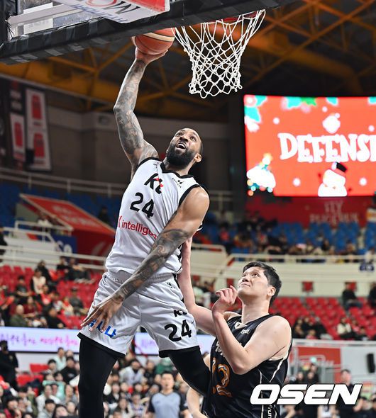 수원 KT 데릭 윌리엄스가 울산 현대모비스 함지훈의 마크를 피해 덩크슛을 시도하고 있다. 2025.12.27 / foto0307@osen.co.kr