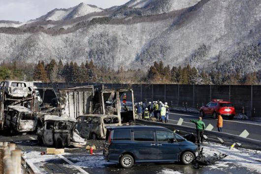 27일 NHK와 아사히신문 등 현지 언론에 따르면, 전날 저녁 7시 30분(현지시간)쯤 대설 경보가 내려진 군마현 미나카미마치 간에쓰고속도로 하행선 나들목 부근에서 눈길에 미끄러진 트럭 2대가 추돌하면서 뒤를 잇던 차량들도 잇따라 추돌했다.