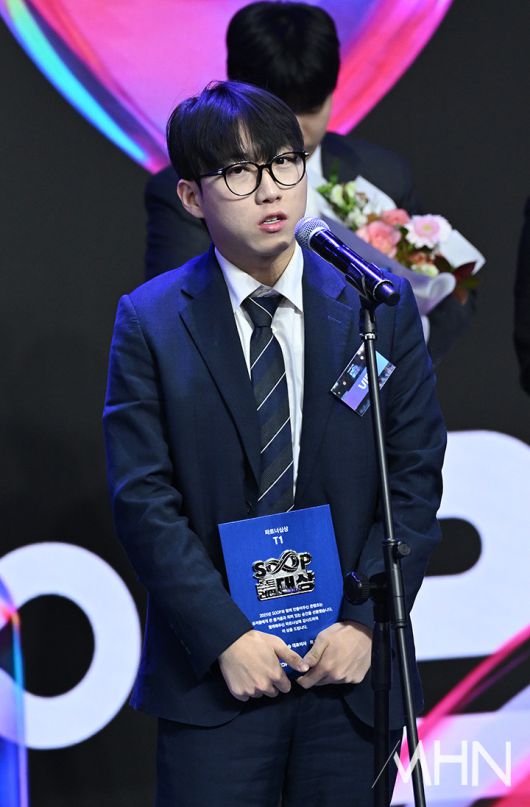 (MHN 이현지 기자) T1 발로란트 버즈 유병철 프로게이머가 27일 오후 서울 마포구 상암 SOOP 콜로세움에서 진행된 '2025 스트리머 대상'에 참석해 소감을 전하고 있다.