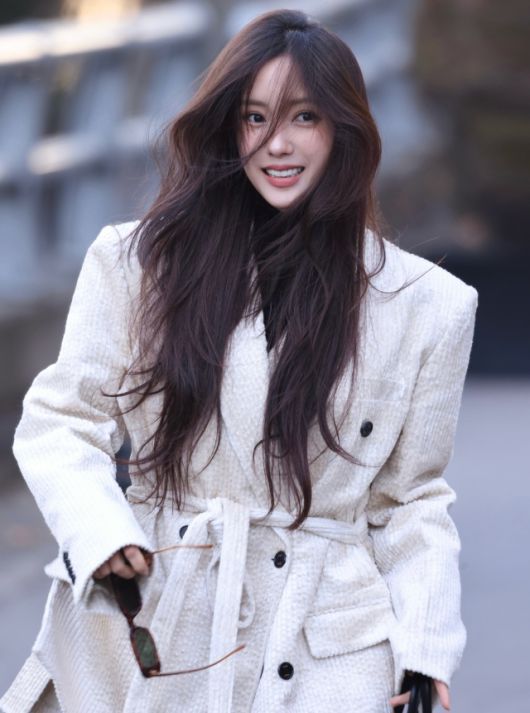 헤어스타일은 과한 컬이나 웨이브 없이 자연스러운 스트레이트에 가까운 롱헤어로, 얼굴선을 따라 떨어지는 잔머리가 부드러운 분위기를 더한다. 전체적으로 손질을 최소화한 듯한 내추럴한 스타일이지만, 윤기 있는 모발과 균형 잡힌 레이어감이 시선을 끌며 ‘지금도 충분히 완성형’이라는 반응을 이끌어냈다.