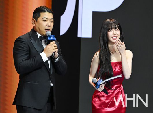 (MHN 이현지 기자) 스트리머 최군, 과즙세연이 27일 오후 서울 마포구 상암 SOOP 콜로세움에서 진행된 '2025 스트리머 대상'에서 진행을 하고 있다.