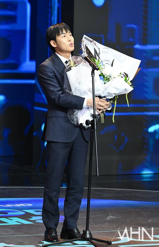 (MHN 이현지 기자) 스트리머 이지상이 27일 오후 서울 마포구 상암 SOOP 콜로세움에서 진행된 '2025 스트리머 대상'에서 소감을 전하고 있다.