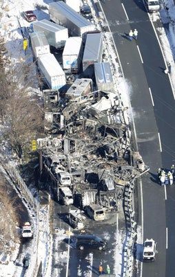 27일(현지 시간) 일본 요미우리신문 등에 따르면 전날 밤 일본 군마현 미나카미 인근 간에쓰 고속도로 하행선에서 차량 67대가 연쇄 추돌하는 사고가 발생했다. 이 가운데 최소 20대의 차량이 화재로 전소됐다.