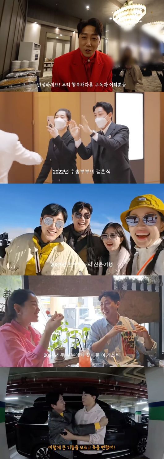 박수홍은 27일 개인 유튜브 채널 '박수홍 행복해다홍'에 '주체할 수 없는 끼! 재이의 흥미로운 표정들 보고 가세요 현말 시상식 뺨치는 돌잔치'라는 제목의 영상을 게재했다. 공개된 영상에는 박수홍이 아내, 딸과 함께 절친한 후배 손헌수의 딸 돌잔치에 참석하는 모습이 담겼다.