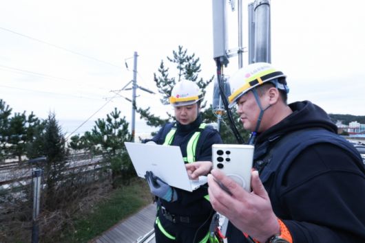 강한 바닷바람에 뺨이 얼얼해지는 강원 강릉시 정동진 해변. LG유플러스 강릉무선파트 직원들은 후드티와 누빔조끼 등 간편한 작업복에 약 2㎏에 달하는 안전 장비를 착용하고 5톤 트럭 위를 오르내렸다. 연말연시 트래픽 폭증에 대비해 이동식 기지국을 전진 배치한 후 이용자의 휴대전화가 적정 신호를 수신하는지, 데이터 속도가 안정적으로 유지되는지 점검하고 안테나 각도를 미세조정하는 작업이다.