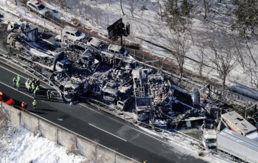 일본 고속도로에서 차량 67대가 연쇄적으로 추돌해 2명이 숨지고 26명이 다치는 사고가 발생했다.
