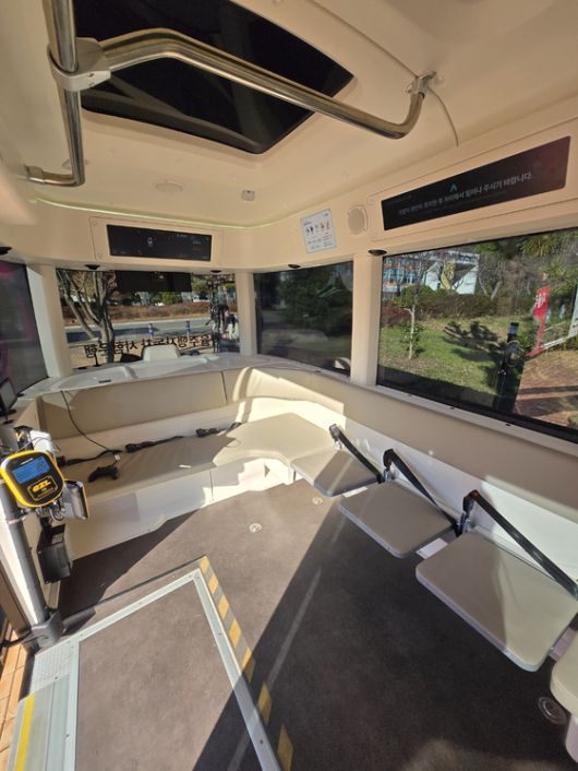 울산 도심을 달리는 자율주행 셔틀형 버스 내부 모습 .사진 울산시, 독자 |