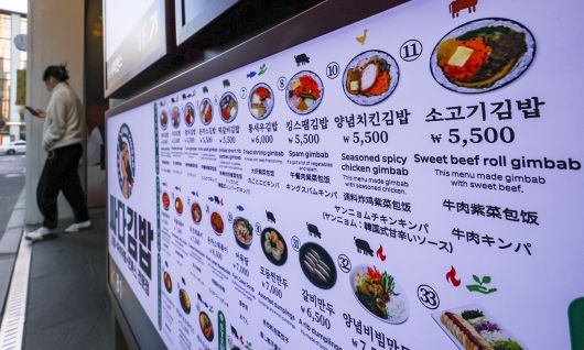 외식물가도 크게 뛰었다. 한국소비자원 가격정보포털 ‘참가격’에 따르면 지난달 기준 서울 지역 소비자 선호 외식 메뉴 8개의 평균 가격은 지난해 11월보다 3∼5%대 상승했다. 일명 ‘서민 음식’이라 불릴 만한 메뉴들의 가격 상승이 두드러졌다. 김밥의 평균 가격은 지난해 11월 3500원에서 올해 11월 3700원으로 1년 새 5.7% 상승했다. 칼국수는 9385원에서 9846원으로 4.9%, 김치찌개 백반은 8192원에서 8577원으로 4.7% 올랐다. 삼계탕, 냉면, 삼겹살, 비빔밥, 자장면 등 메뉴의 가격도 일제히 올랐다.