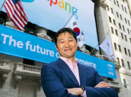 2021년 3월 11일(현지 시각) 뉴욕증권거래소 앞에서 쿠팡Inc 상장 기념으로 사진을 찍는 김범석 의장. 미국 국적인 그는 ‘쿠팡Inc’ 의결권 74.3%를 보유하고 있다. [쿠팡 제공] |