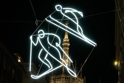 [밀라노=AP/뉴시스] 이탈리아에서 열리는 '2026 밀라노·코르티나담페초 동계올림픽'을 앞두고 27일(현지 시간) 밀라노 두오모 고딕 대성당 주변에 네온 올림픽 조형물이 설치돼 있다. 제25회 동계올림픽은 내년 2월 6일부터 22일까지 이탈리아 밀라노와 코르티나담페초에서 열린다. 2025.12.28.