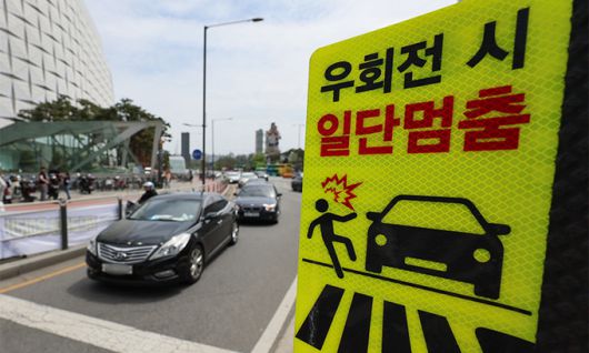2023년 1월부터 시행한 도로교통법 개정안에 따라 교차로에서 우회전할 때 횡단보도 앞에서 반드시 일시정지해야 한다. 보행자가 통행하거나 통행하려고 할 때도 일시정지 의무가 강화됐다.