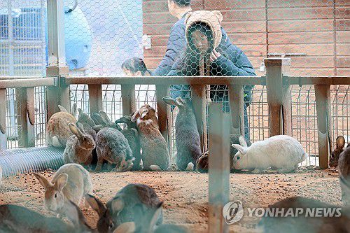 (임실=연합뉴스) 28일 전북 임실군 치즈테마파크에서 열리고 있는 산타축제에서 어린이들이 동물체험공간인 임실자연농원에서 토끼에게 먹이를 주고 있다. 2025.12.28 [임실군 제공. 재판매 및 DB 금지]