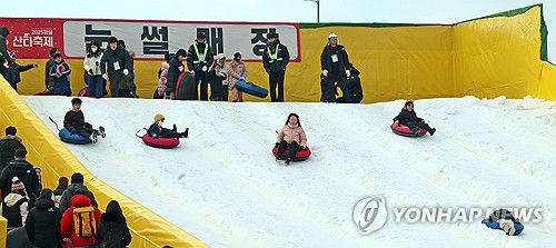 (임실=연합뉴스) 28일 전북 임실군 치즈테마파크에서 열리고 있는 산타축제에서 어린이들이 신나게 눈썰매를 타고 있다. 2025.12.28 [임실군 제공. 재판매 및 DB 금지]