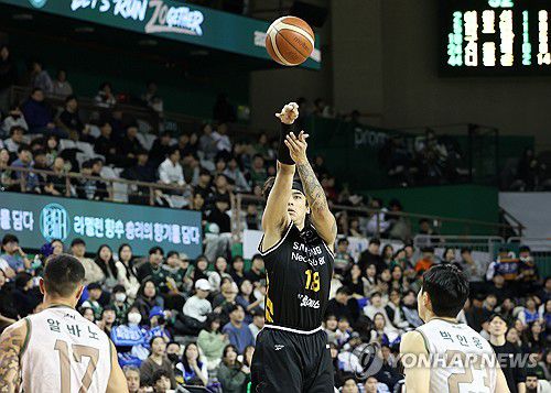 (원주=연합뉴스) 양지웅 기자 = 28일 강원 원주DB프로미아레나에서 열린 2025-2026 프로농구 원주 DB와 서울 삼성의 경기. 삼성 저스틴 구탕이 3점슛을 시도하고 있다. 2025.12.28