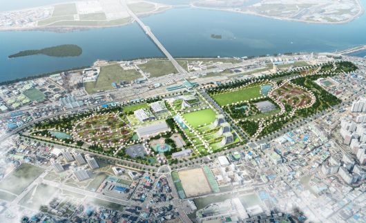 춘천 도시재생혁신지구 구상안. 옛 캠프페이지 일부 용지에 시민공원과 첨단영상산업 클러스터, 대형 복합스튜디오, 컨벤션센터 등을 조성하는 방안이 추진되고 있다. 춘천시 |