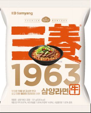 삼양1963은 과거 삼양라면 제조의 핵심이었던 '우지' 유탕 처리 방식을 현대적으로 재해석해 동물성 기름 우지와 식물성 기름 팜유를 황금 비율로 혼합한 골든블렌드 오일을 사용해 면을 튀겨냈다. 삼양식품 측은 "면의 고소함과 감칠맛을 강화했고 액상수프와 후첨 분말플레이크를 적용해 원재료의 풍미를 더욱 살렸다"며 "사골 육수로 면에서 우러나온 우지의 풍미를 높여 깊은 맛을 더하고 무와 대파, 청양고추로 깔끔한 뒷맛과 얼큰함을 강조한 국물을 완성했다"고 설명했다.