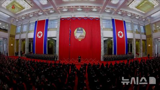 [서울=뉴시스] 김정은 북한 국무위원장이 지난 27일 만수대의사당에서 조선민주주의인민공화국 헌법절 기념 행사에 참석했다고 조선중앙TV가 28일 보도했다. (사진=조선중앙TV 캡처) 2025.12.28. photo@newsis.com