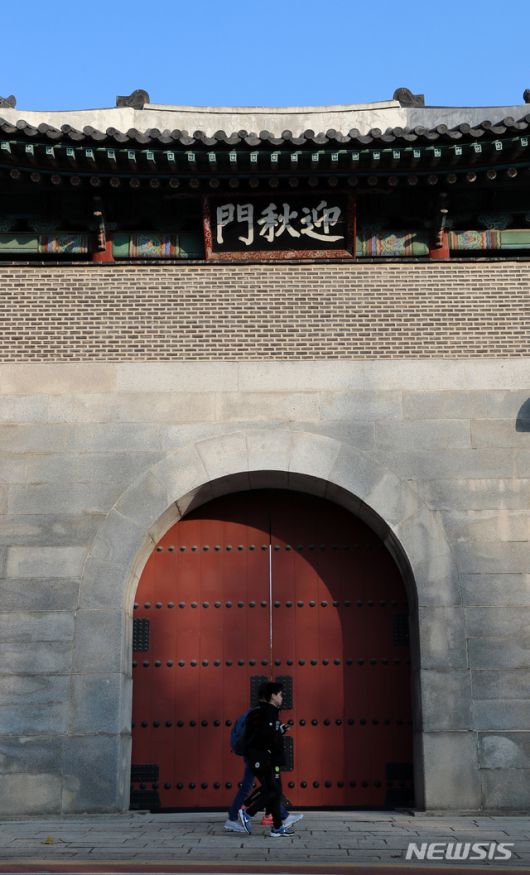 【서울=뉴시스】이영환 기자 = 문화재청 경복궁관리소가 43년만에 경복궁의 서문인 영추문(迎秋門)의 개방을 밝힌 26일 오후 서울 종로구 경복궁 영추문(迎秋門)이 보이고 있다.경복궁관리소는 경복궁과 서촌 지역 방문 관람객의 편의를 높이고 지역 경제 활성화를 위해 오는 12월 6일부터 영추문(迎秋門)을 개방한다고 밝혔다. 2018.11.26. 20hwan@newsis.com |