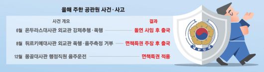 주한 대사관 소속 외교관과 직원들이 범죄 혐의에 연루되고도 경찰 수사를 받지 않는 사례가 잇따르고 있다. 국제 협약에 따라 외교관 등 공관 구성원에게 주재국의 형사 관할권을 면제하는 '면책특권'이 부여되기 때문이다. 범죄 혐의가 명백한 사안에까지 면책특권이 적용되는 것은 제도 취지에 맞지 않는다는 지적이 나온다.