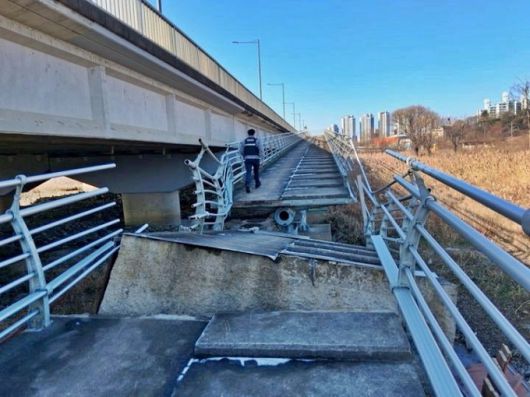 28일 뉴시스에 따르면 이날 낮 12시10분쯤 광신대교 옆 보행교가 무너져 있다는 신고가 접수됐다.
