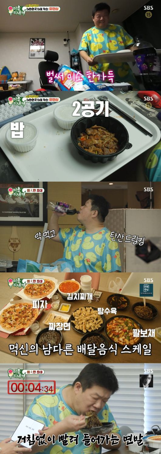 28일 오후 방송된 SBS 예능프로그램 ‘미운 우리 새끼’(이하 ‘미우새’)에서 대한민국 대표 먹신 유민상이 처음으로 일상을 공개했다.