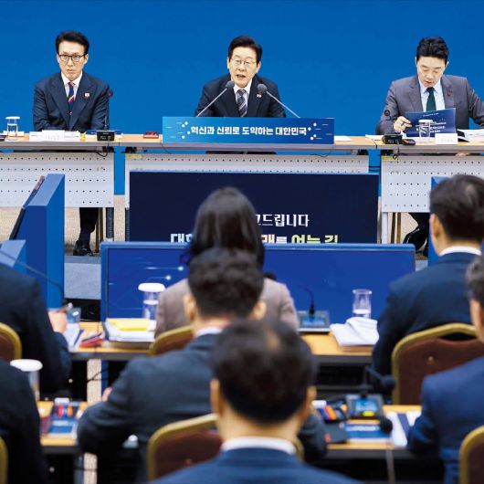 이재명 대통령이 정부 부처 및 산하 유관·공공기관으로부터 업무보고를 받는 자리에서 보여주는 직설적 화법과 화려한 언변이 연일 화제다. 온 국민이 지켜보는 가운데 회의 참석자들을 쥐락펴락하는 광경은 본인 말마따나 “넷플릭스보다 더 재미있다”고 느낄 만한 측면도 있다. 좋게 보면 이는 국정 운영에 대한 자신감의 발로다. 하지만 이달 초만 하더라도 딱히 그렇지만은 않았다.