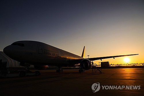 (영종도=연합뉴스) 임화영 기자 = 해 질 녘 비행기 날개 아래서 묵묵히 손을 움직이는 아시아나항공 격납고 작업자처럼, 상처 난 부분을 닦아내며 한 해를 정비하는 시간을 가져봅니다.