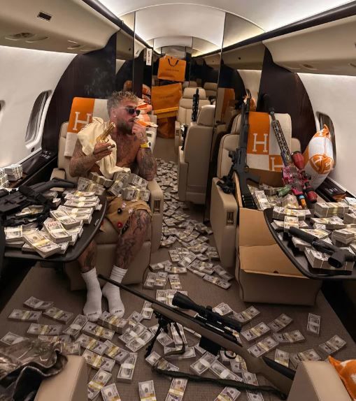 [서울=뉴시스]한민아 인턴 기자 = 유튜버 출신 복서 제이크 폴이 앤서니 조슈아에게 KO패를 당한 뒤, 개인 전용기에서 현금과 총기를 과시하는 사진을 자신의 SNS에 공개해 화제를 모으고 있다.