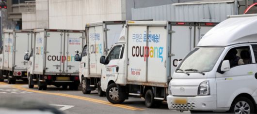 김범석 쿠팡 의장이 공식 사과문을 발표한 28일 서울시내 한 쿠팡 물류센터에 배송트럭이 주차돼있다. /사진=뉴스1 |