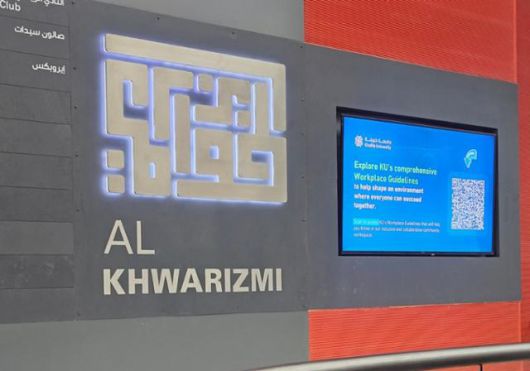 3일 아랍에미리트(UAE) 아부다비 칼리파대의 한 벽면에 수학자 알 콰리즈미 이름이 적혀 있다. 아부다비=김태연 기자 |