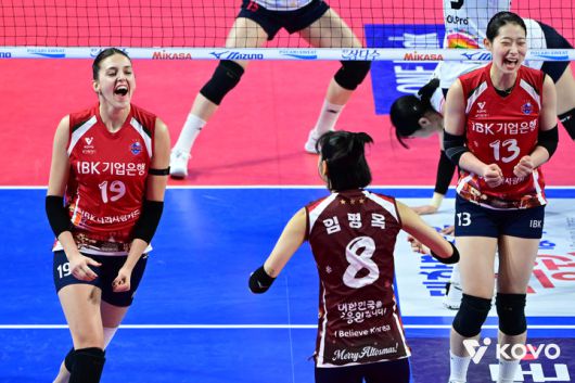 기업은행은 28일 경기도 화성종합체육관에서 열린 여자프로배구 진에어 2025-2026 V리그 여자부 홈 경기에서 정관장을 세트 스코어 3-1(25-18 25-22 17-25 25-17)로 완파했다.