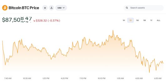 비트코인이 혼조세를 이어가고 있다. 29일(한국시간) 오전 7시 20분 기준 코인베이스에 따르면 비트코인 가격은 8만7500달러선에서 거래되며 전일 대비 약 0.3% 하락했다. 장중 변동성은 제한적인 가운데 뚜렷한 상승 흐름은 나타나지 않고 있다.