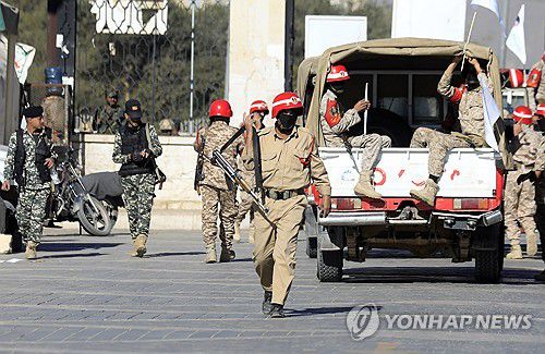 지난 25일(현지시간) 예멘 수도 사나 시내의 후티 반군 병력들 |