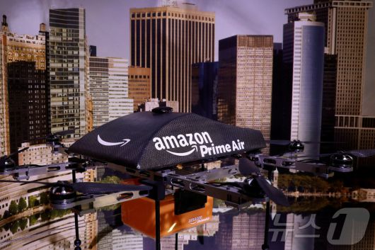 세계 최대 전자상거래 업체 아마존의 드론 배송 서비스 '프라임 에어'에 사용될 드론 모형이 2017년 5월 미국 뉴욕에서 열린 전시회에 모습을 드러냈다. 아마존은 2022년 12월 텍사스주(州) 칼리지스테이션에서 프라임 에어 시범 사업을 시작했다. 2017.05.09. ⓒ 로이터=뉴스1 ⓒ News1 김성식 기자 |