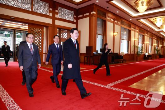 (서울=뉴스1) 허경 기자 = 이재명 대통령이 29일 청와대로 첫 출근하고 있다. (청와대통신사진기자단) 2025.12.29/뉴스1neohk@news1.krCopyright ⓒ 뉴스1. All rights reserved. 무단 전재 및 재배포, AI학습 이용 금지.