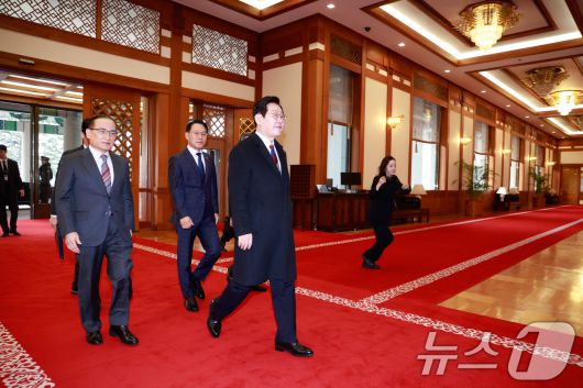 (서울=뉴스1) 허경 기자 = 이재명 대통령이 29일 청와대로 첫 출근하고 있다. (청와대통신사진기자단) 2025.12.29/뉴스1