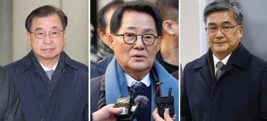 (왼쪽부터) 서훈 전 청와대 국가안보실장, 박지원 더불어민주당 의원(전 국가정보원장), 서욱 전 국방부 장관. 사진공동취재단 |