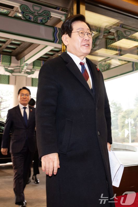 (서울=뉴스1) 허경 기자 = 이재명 대통령이 청와대 공식 근무를 시작한 29일 청와대 본관으로 첫 출근하고 있다. (청와대통신사진기자단) 2025.12.29/뉴스1