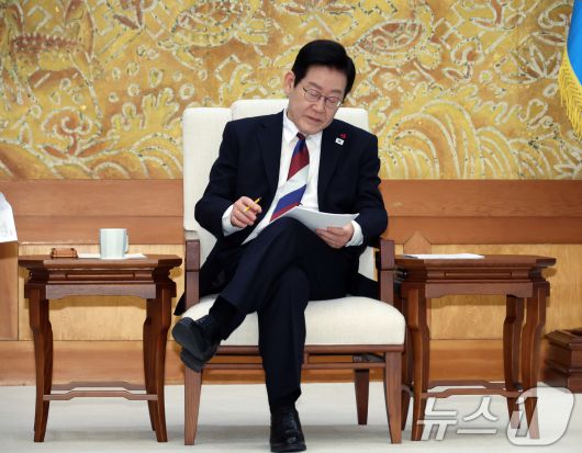 (서울=뉴스1) 이재명 기자 = 이재명 대통령이 29일 대통령실 이전 작업이 마무리된 청와대로 출근한 뒤 위성락 안보실장, 김용범 정책실장을 비롯한 참모들과 차담을 하고 있다. (청와대통신사진기자단) 2025.12.29/뉴스1