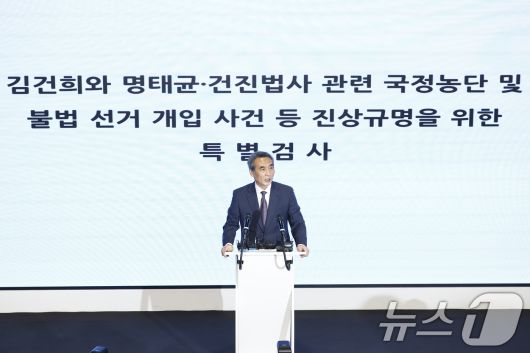 (서울=뉴스1) 박정호 기자 = 김건희와 명태균·건진법사 관련 국정농단 및 불법 선거 개입 사건 등 진상규명을 위한 특별검사팀 민중기 특별검사가 29일 오전 서울 종로구 KT광화문빌딩 웨스트에 마련된 특별검사팀 브리핑룸에서 특검 수사 결과 종합 브리핑을 하고 있다 2025.12.29/뉴스1
