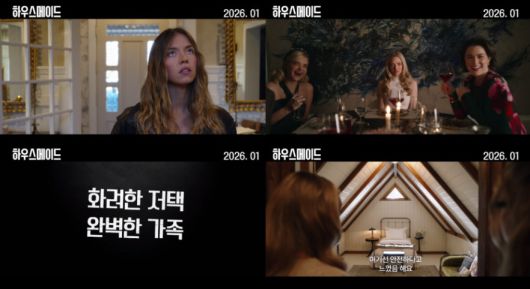 이어 “화려한 저택 완벽한 가족”, “닫힌 문 너머”, “거짓이 드러난다”라는 카피와 함께 얼굴에 피를 묻힌 밀리, 경찰에 잡혀 있는 니나의 장면이 교차되며 예측 불가한 전개와 강렬한 서스펜스를 예고한다. 한편 영화 ‘하우스메이드’는 지난 19일 북미 개봉 이후 글로벌 언론과 평단의 호평을 받으며 화제를 모으고 있다. 완벽해 보이는 공간과 관계 속에 숨겨진 욕망과 거짓, 그리고 반전으로 치닫는 전개를 통해 예비 관객들의 기대를 한층 끌어올리고 있다.