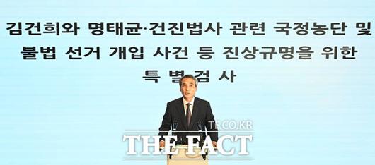 [더팩트ㅣ이새롬 기자] 김건희 여사 연루 의혹을 수사해 온 민중기 특별검사가 29일 서울 종로구 KT광화문빌딩 웨스트에서 종합 브리핑을 열고 수사 결과를 발표하고 있다.