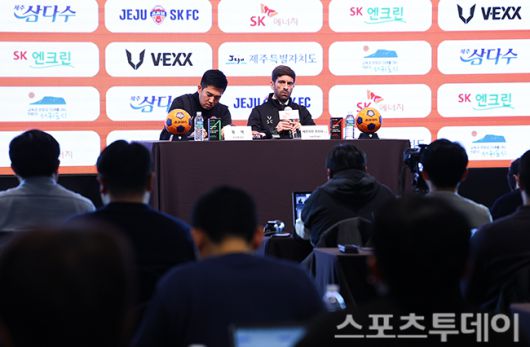 [스포츠투데이 팽현준 기자] 세르지우 코스타 감독이 29일 서울 강서구 메이필드호텔에서 열린 제주 SK FC 감독 부임 기자회견에서 취재진의 질문에 답하고 있다. 2025.12.29. [스포츠투데이 팽현준 기자 sports@stoo.com]